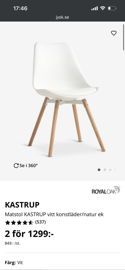 4 500 krMatgrupp med 4 st Estelle stolar från Mio + runt bord 140cm MioHuskvarna6 dagarLägg till i favoriter.