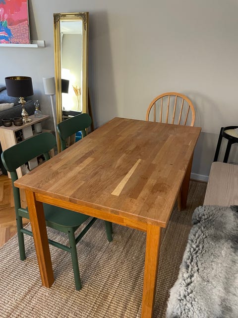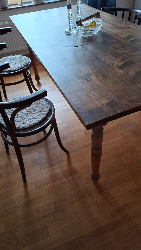 Stort matbord. 4 stolar