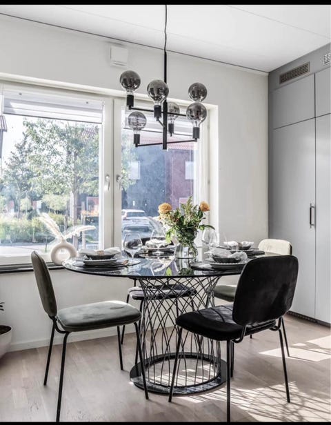 Runt matbord stolar