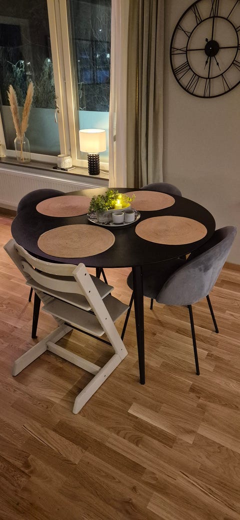 Matbord med gråa stolar