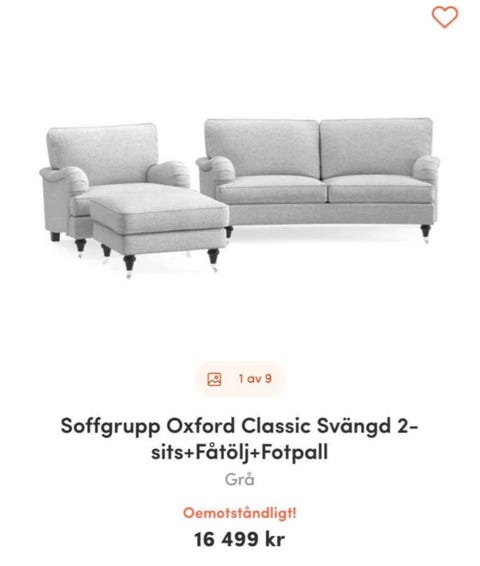 Soffa 2–3 sits grå tyg
