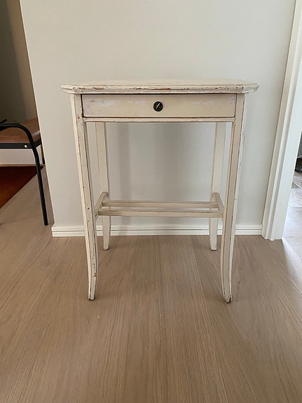 SäljesSängbord trä vitt med låda och hylla - vackert bord i toppskickGyttorp18 febLägg till i favoriter.