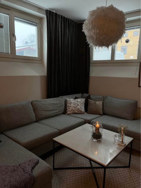soffa med fåtölj