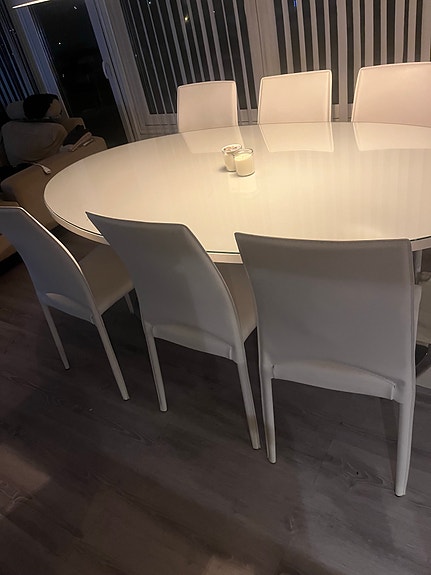 5 500 krmassivt träbord med inbyggd förlängningsskiva och sex stoJönköping8 marLägg till i favoriter.