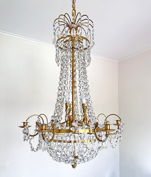 3 200 krSTOR Fantastisk ORIGINAL KRISTALLKRONA empire 5 armar 1940-tal i mässingHalmstad20 marKöp nuLastbil i rörelseKan skickasLägg till i favoriter.Öppna annons