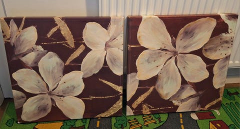 Två tavlor med blommotiv