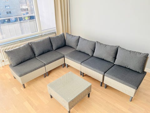 2 000 krUtemöbelset med två fåtöljer, soffa och bord i svart metall med gråa dynorSödertälje11 timLägg till i favoriter.