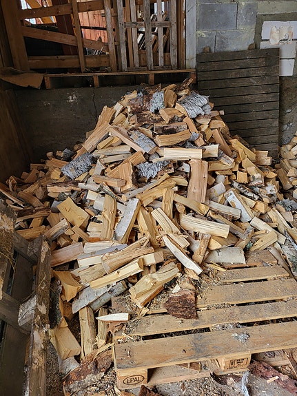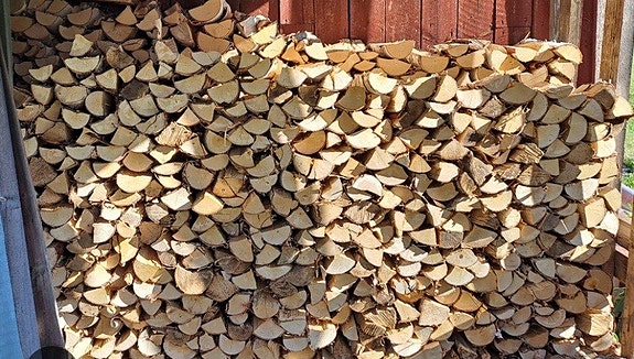 Björkved kapad och kluven