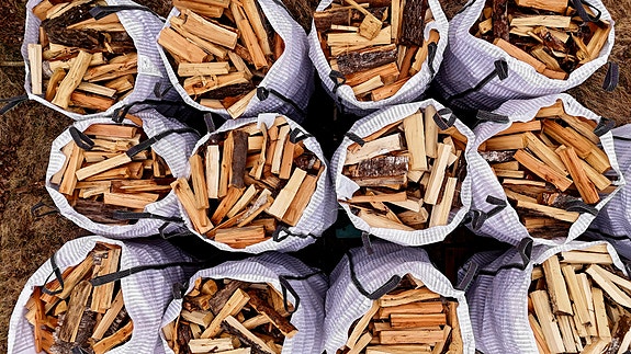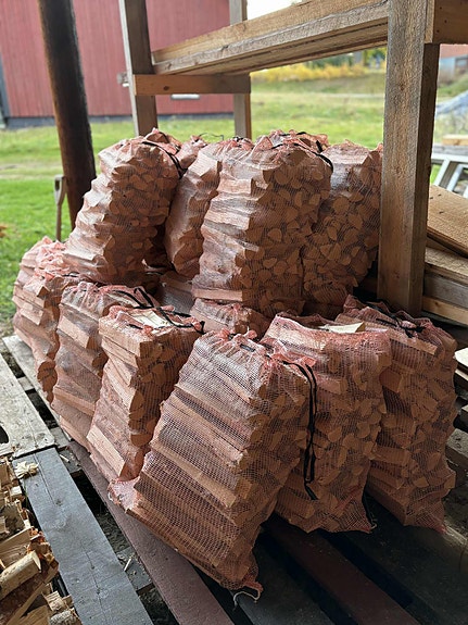 Ved i nätsäck