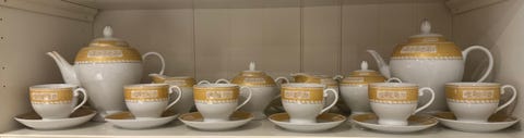 Kanna, vit med gulddekor