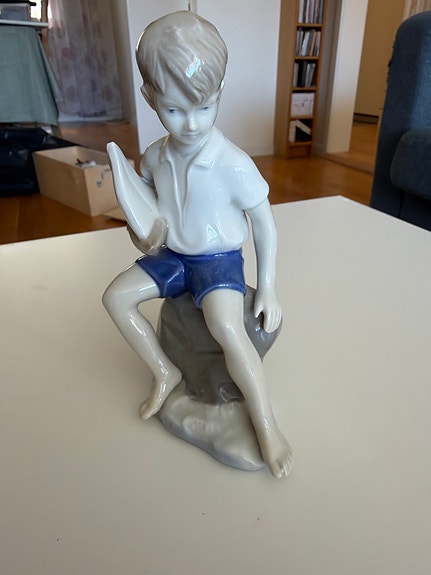 Lladró porslinsfigur flicka med hatt och blommor blåvit