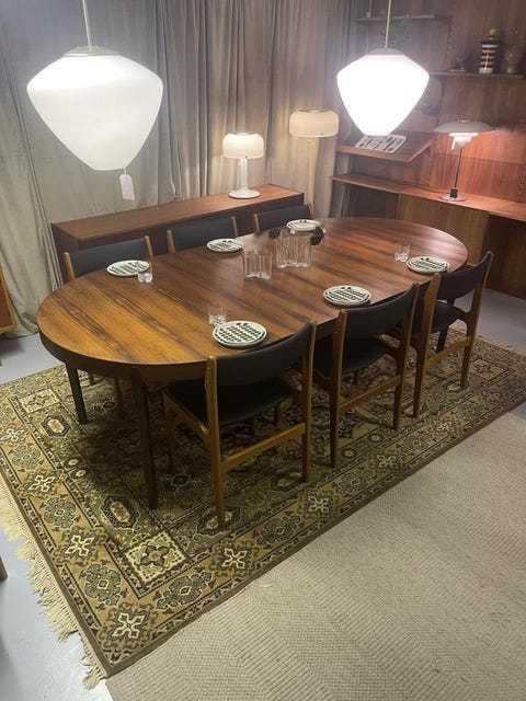 Matsalsbord och stolar och skänk