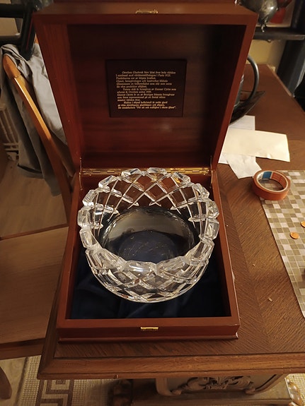 Orrefors skål i kristall med trälåda