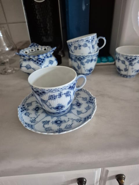Rörstrand tallrikar blå spets- stor servis porslin blåvit dekor