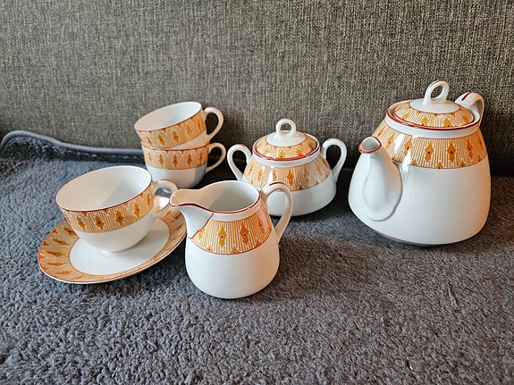 Hackman Mod. House porslin kaffekoppset med fat och tekanna