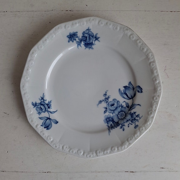 Oscar Clothilde tallrikar porslin blåvit dekor, 13 st