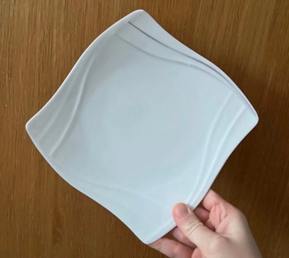 Porslinstallrik vit fyrkantig med dekorlinjer