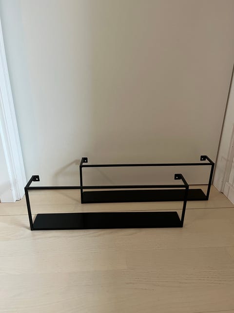 Två svarta vägghyllor