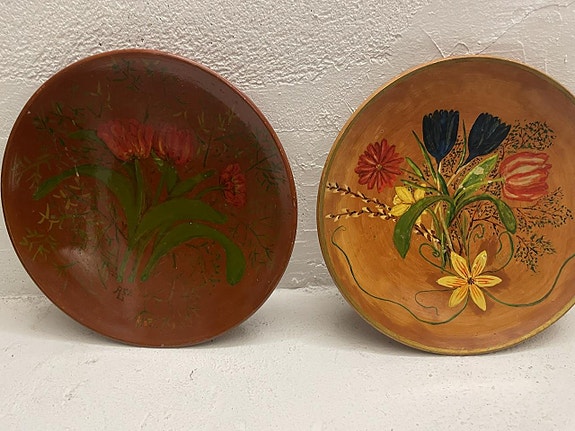 2 handmålade väggtallrikar för dekoration