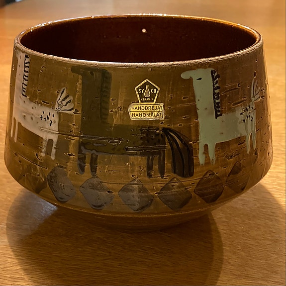 Syco keramikskål/ ampel brun med hästmotiv, Knud Johansen