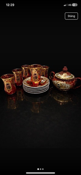 teservis i rött och guld från Persien