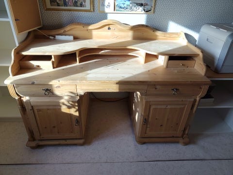 Ett skrivbord som inte längre behövs av någon annan kan vara precis vad du letar efter. Särskilt skrivbord i massivt trä eller elektriska skrivbord kan vara kostsamma, men du kan hitta ett passande alternativ betydligt billigare begagnat. Ett bra skrivbord har en höjd som passar användaren eller kan justeras efter behov. När du bläddrar bland annonserna - se till att kolla bordets mått och jämför dem med den bästa arbetshöjden för dig.