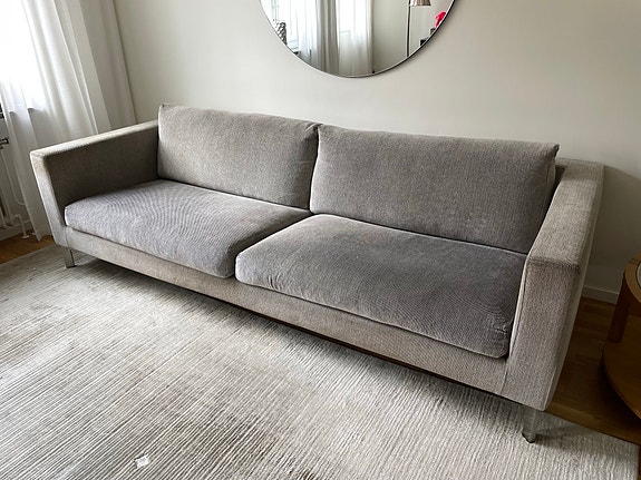 Sammet grå soffa