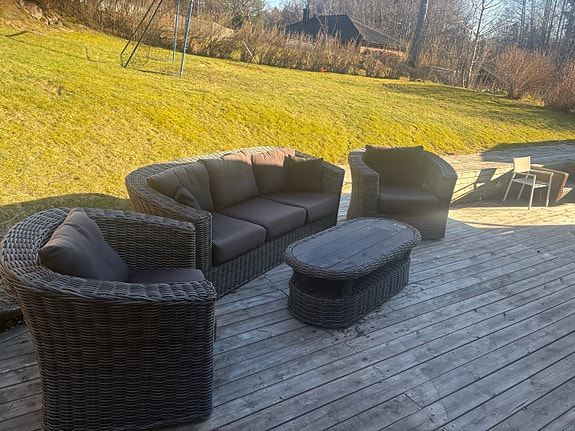 6 500 krUtan märke loungeset utemöbler konstrotting grå med dynorTäby11 aprLägg till i favoriter.Öppna annons