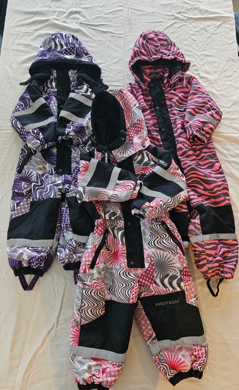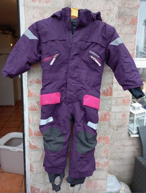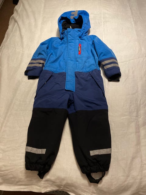 Under vintern är det viktigt att hålla de små varma med rätt kläder: ulliga heldräkter, sockor, vantar, mössor och ytterkläder. En overall är ofta snabbare att ta på än separata jackor och byxor, och snön har svårare att tränga in. I annonserna bör du kolla skicket på ytterkläderna, till exempel hur bra muddar och ben kan justeras, om det finns många reflexer och om kläderna är vattentäta.