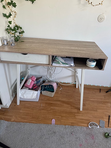250 krSkrivbord i trä med förvaring + kontorsstol i svart skinnSjöbo16 marLägg till i favoriter.Öppna annons
