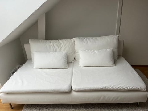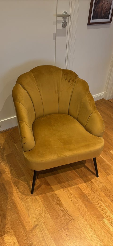 BORTSKÄNKES: Vit fåtölj, finns på Södermalm