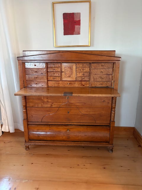 Sekretär i trä med lådor