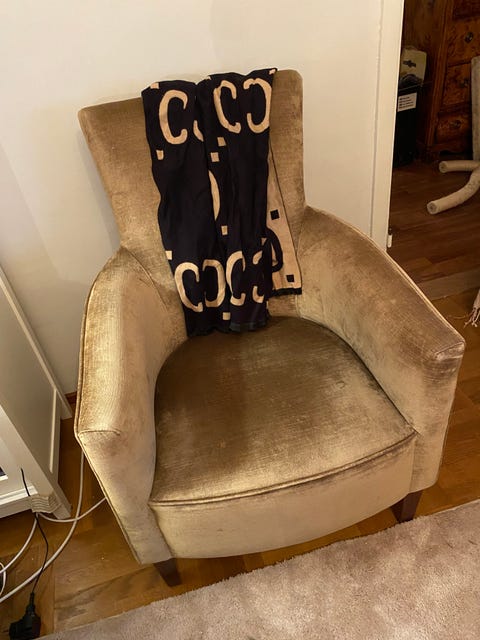 En fin klassisk fåtölj i beige sammet.
