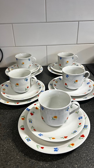 Retro kaffeservis 9 koppar+12 fat+11 assietter