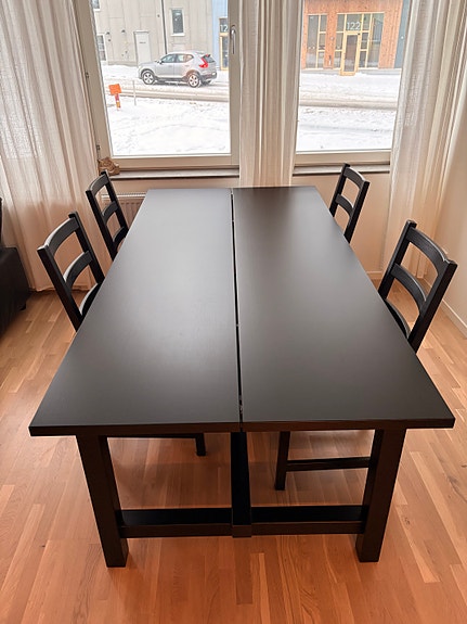 2 500 krIKEA NORDVIKEN Table and 4 chairs, black/black, 210/289x105 cm IKEATäby7 marLägg till i favoriter.Öppna annons