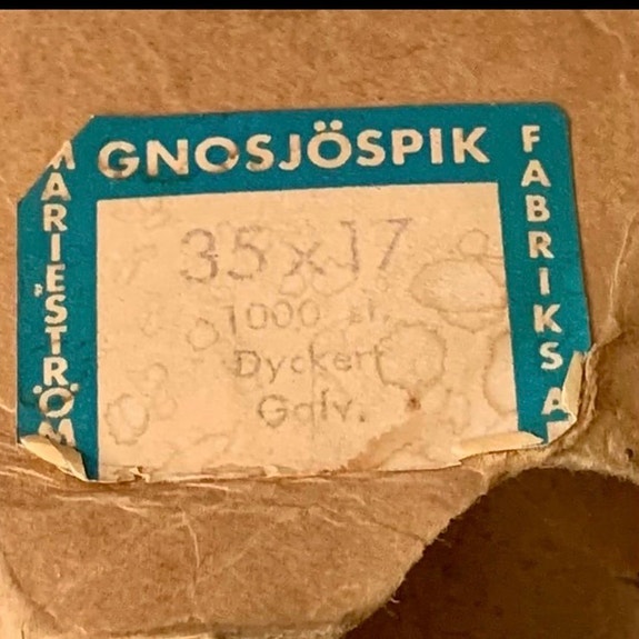 40 krGammal Gnosjöspik galvaniserad dyckert 35x17 Marieströms fabriksask cirka 250 stLinköping13 marKöp nuLastbil i rörelseKan skickasLägg till i favoriter.
