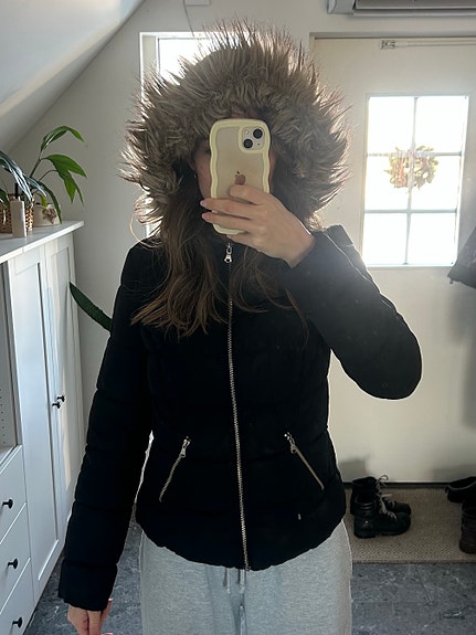 Svart vinterjacka med huva