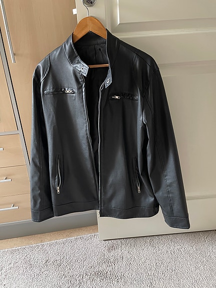 Vacker svart vegansk läderjacka