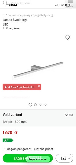 500 krSvedbergs Lign WL2335 LED vägglampa 500 mm kromGullbrandstorp2 timKöp nuLastbil i rörelseKan skickasLägg till i favoriter.Öppna annons