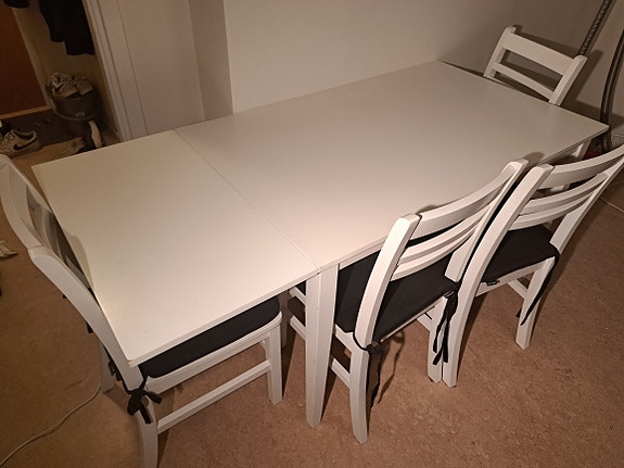 5 000 krStort matbord med 2 iläggsskivor och åtta stolarSkoghall30 marLägg till i favoriter.Öppna annons