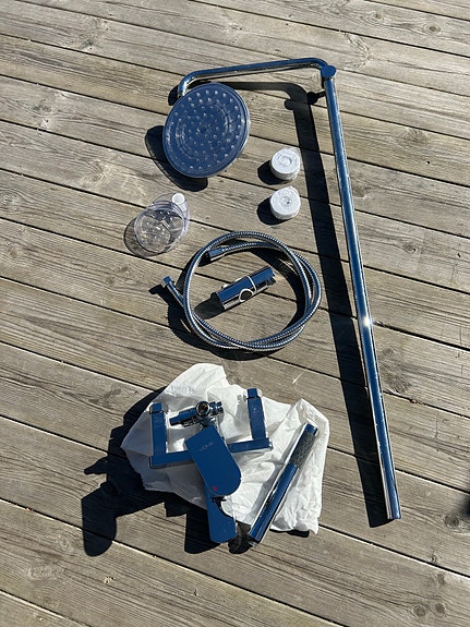Takdusch med handdusch.