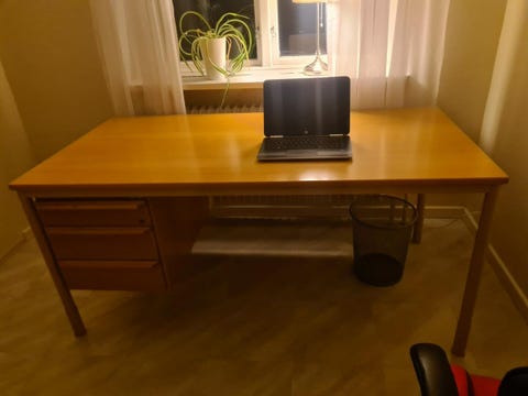 Ett skrivbord som inte längre behövs av någon annan kan vara precis vad du letar efter. Särskilt skrivbord i massivt trä eller elektriska skrivbord kan vara kostsamma, men du kan hitta ett passande alternativ betydligt billigare begagnat. Ett bra skrivbord har en höjd som passar användaren eller kan justeras efter behov. När du bläddrar bland annonserna - se till att kolla bordets mått och jämför dem med den bästa arbetshöjden för dig.