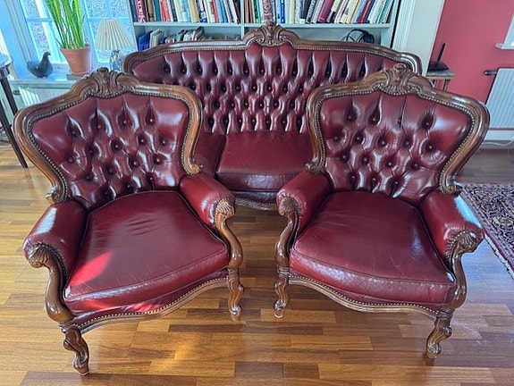 6 000 krKlassisk Vacker Skön Soffgrupp i rokokostil med oxblodsfärgat läderHägersten2 timLägg till i favoriter.Öppna annons