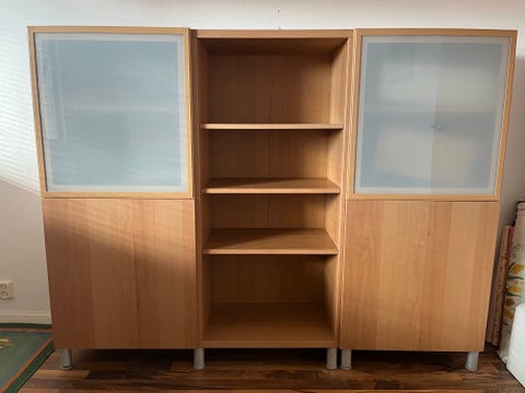 bokhylla, vitrinskåp