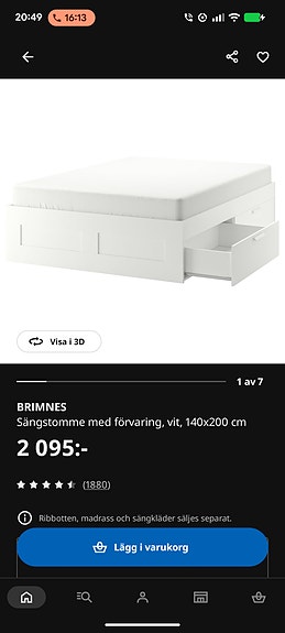 1 500 krIKEA säng med förvaring och gavel (madrasser ingår ej) IKEALidingö11 timLägg till i favoriter.Öppna annons