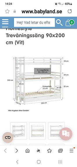 6 000 krBabyland- trevåningssäng 90x200 cm inkl Ikea madrasserTyresö15 timLägg till i favoriter.Öppna annons