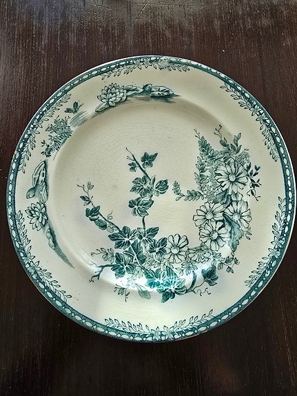 Antik Gustavsberg "Flora" tallrik 21,5 cm – 3 st, flintgods, 1880–1920