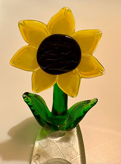 Superfin ljushållare med solros i konstglas!