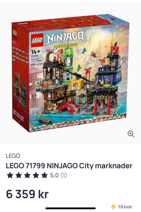 5 500 krLEGO NINJAGO 71799 Ninjago City Markets LEGOHässelby6 timKöp nuBetald placeringLägg till i favoriter.