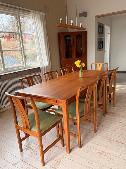 15 000 krStor matgrupp i massiv ek (240 cm) + 6 karmstolar i läder MioVega14 marLägg till i favoriter.Öppna annons